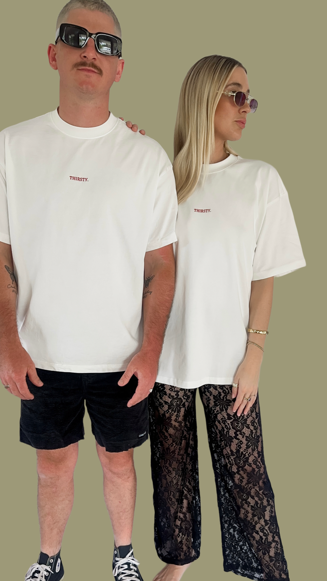 We hate boring and we love slang but most of all we love to be comfortable whilst having a bloody good time. This tee features an oversized, boxy fit.
