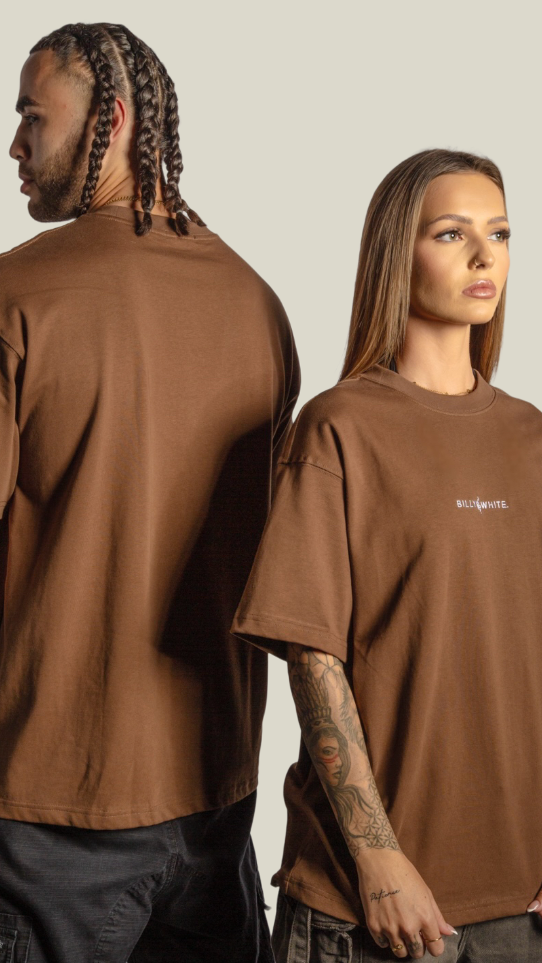 Female is 168 cm tall wearing a Size Small. Male is 188 cm tall wearing a Size XL.